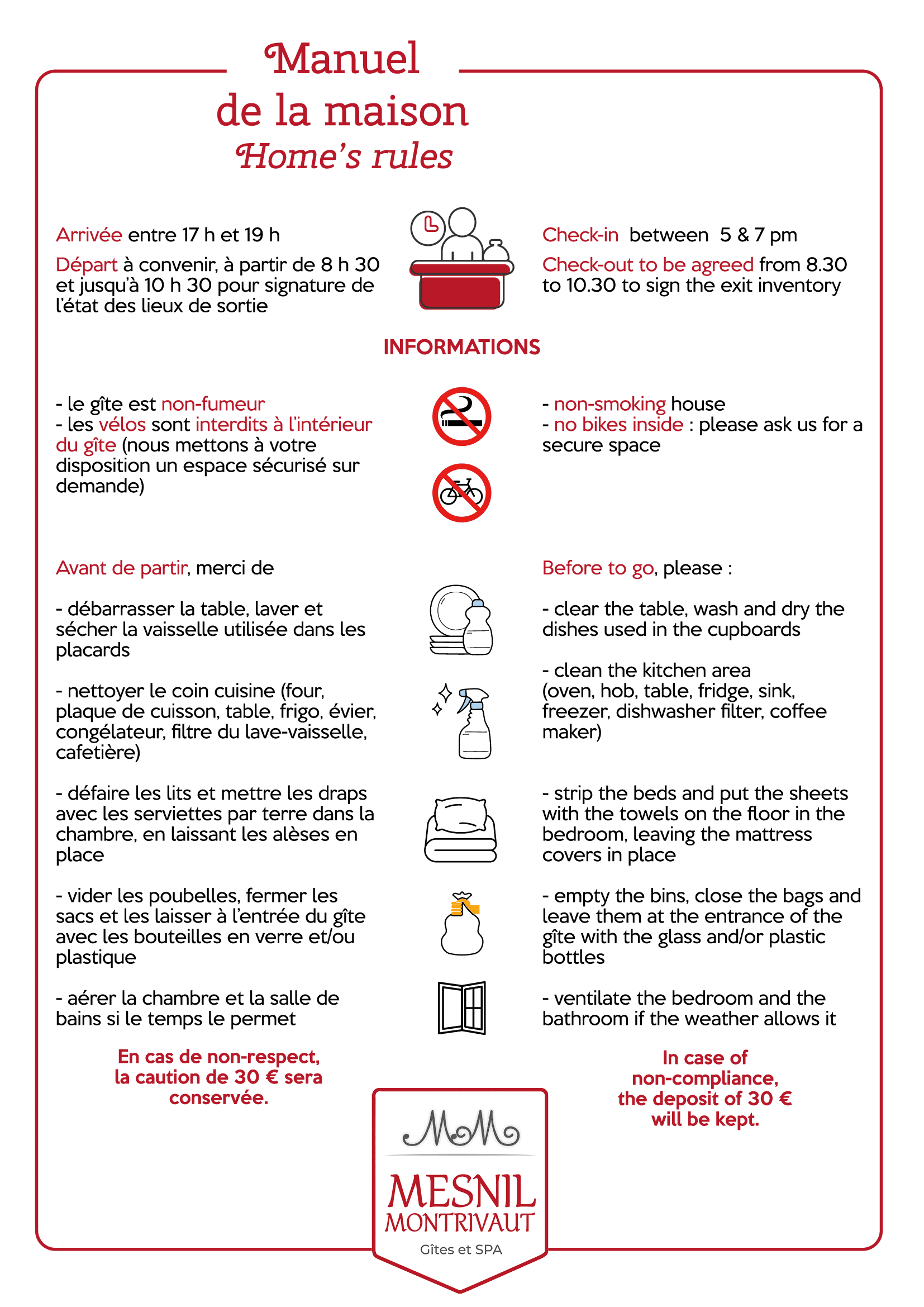 Nous avons mis en place quelques règles simples pour permettre à chacun de nos hôtes de passer le meilleur séjour possible.
