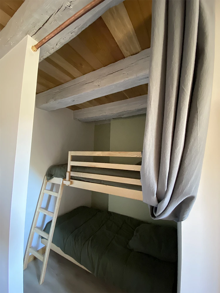 - une chambre cabine avec 2 lits simples supersposés de 90,